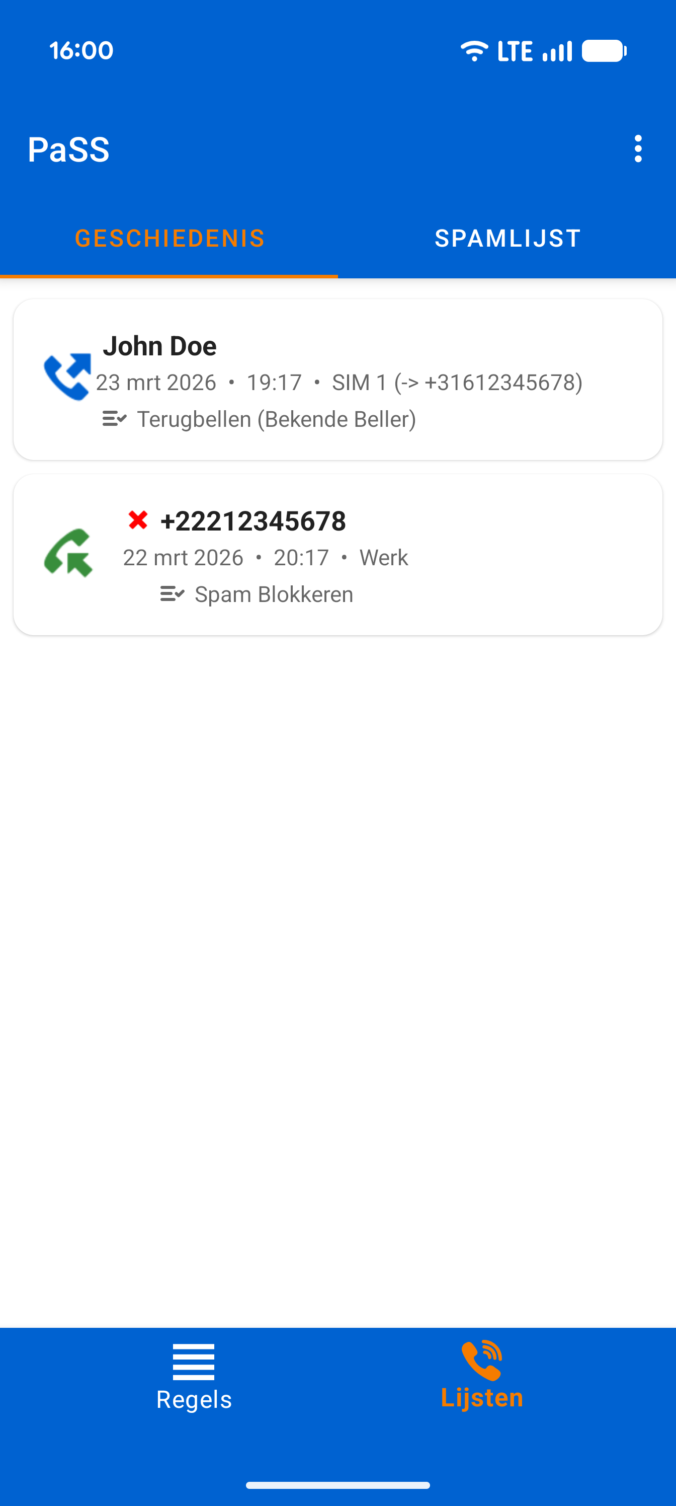 Wat begon als een tool om zakelijk en privé te scheiden (uitgaande gesprekken routeren en nummers verbergen), is met versie 2.2 uitgegroeid tot een uitgebreide 'Call Firewall'. Gebruikers hebben nu 100% controle over wie hen mag bellen. Je bouwt je eigen lokale spamlijsten (met wildcards voor hele reeksen), blokkeert anonieme telemarketeers en ziet in de nieuwe 'Slimme Geschiedenis' exact welke regel op welk moment zijn werk heeft gedaan. Alles volledig geautomatiseerd en 100% lokaal verwerkt voor maximale privacy.